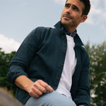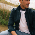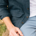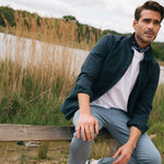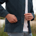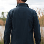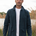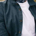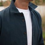 Unstructured and unlined, with this interpretation we have opted for a deliberately paired back design constructed from a durable, shower proof blend of dry waxed cotton and linen in a deep petrol blue. Come shower or shine, simply throw on for a confidently casual extra layer.