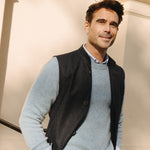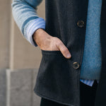 Available in Dark Navy and sumptuous Sage Green, it's a smart choice for anyone looking for a traditional, timeless extra layer, wearable indoors and out, under or over.