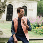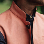 Introducing the latest update to our classic Nehru-collared Como linen waistcoat. Made from premium Irish linen, the Como waistcoat is a lighter alternative to our Alderney linen style. Available in a range of colour options, this vibrant pink shade is complemented by a navy half lining that extends to the inner collar for a refined, understated contrast.