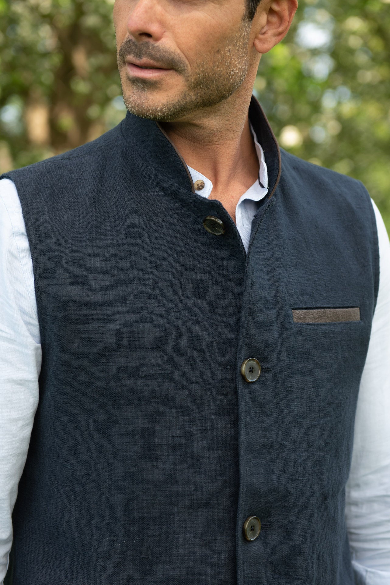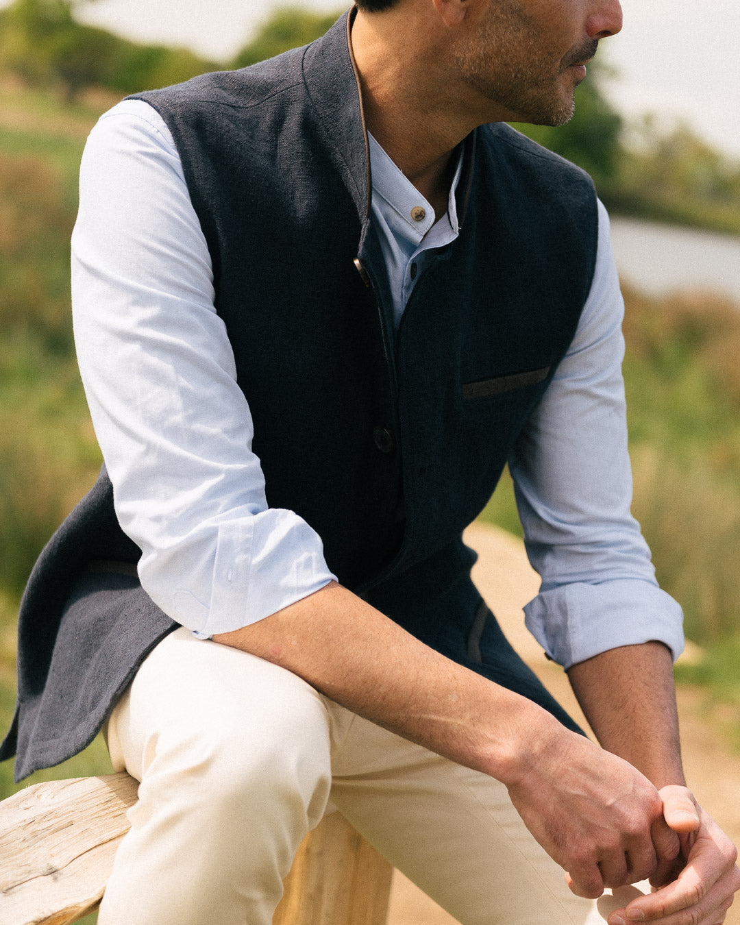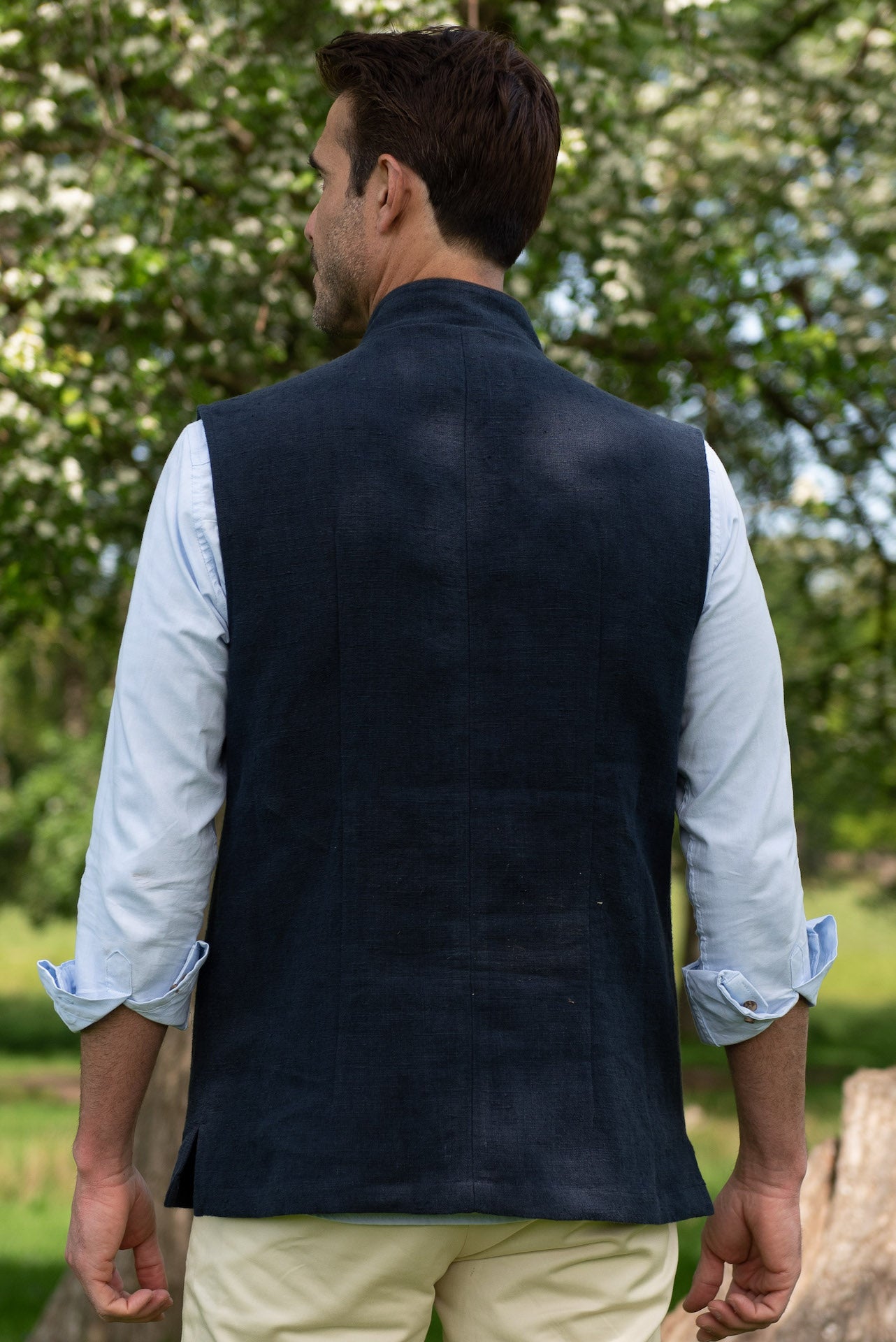 The Alderney linen waistcoat is the culmination of our efforts to find the perfect answer to mid-season and late summer layering.