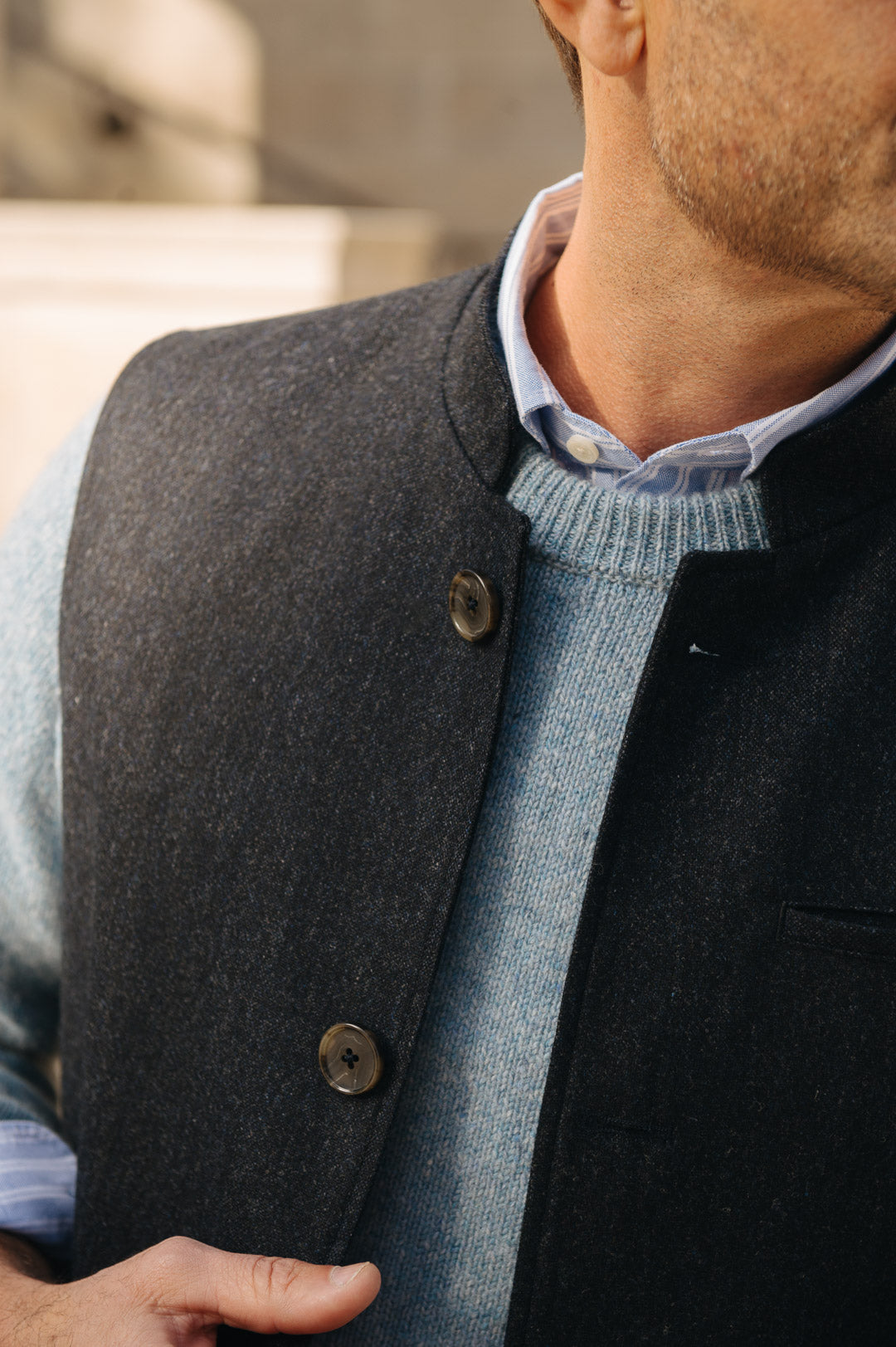 Cut from a super soft, lightweight Merino wool milled by master cloth makers at Abraham Moons in Yorkshire, what this waistcoat lacks in traditional Darzi detailing (no contrasting pocket welts or leather collar trim here), it more than makes up for in its simplicity of style and refined good looks.