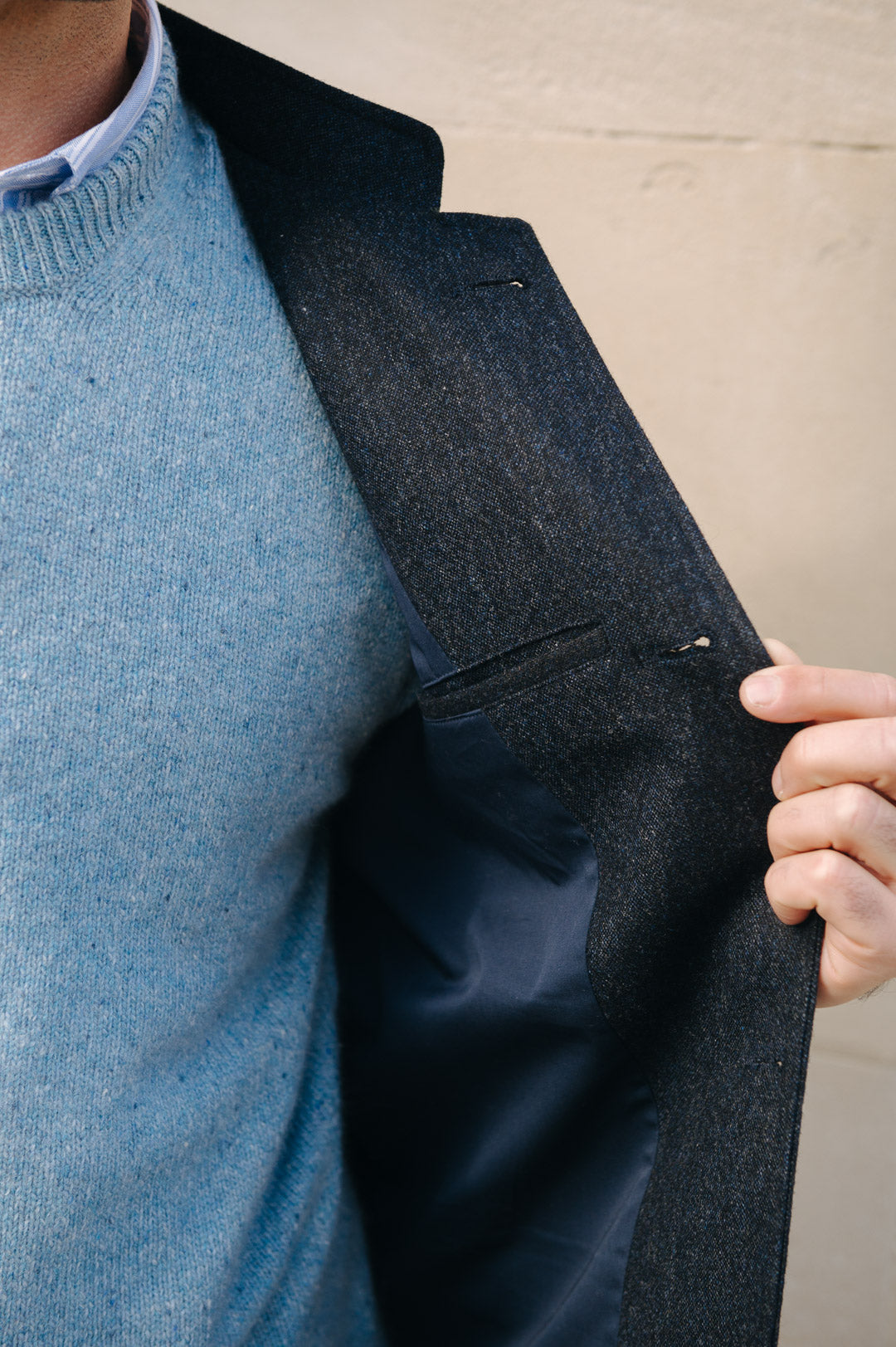 For day to day care, store on a hanger where possible. If well used, or even a little abused, simply hanging out in cool, fresh air for a short time is often all that is needed to bring a wool garment back to its original shape and form.