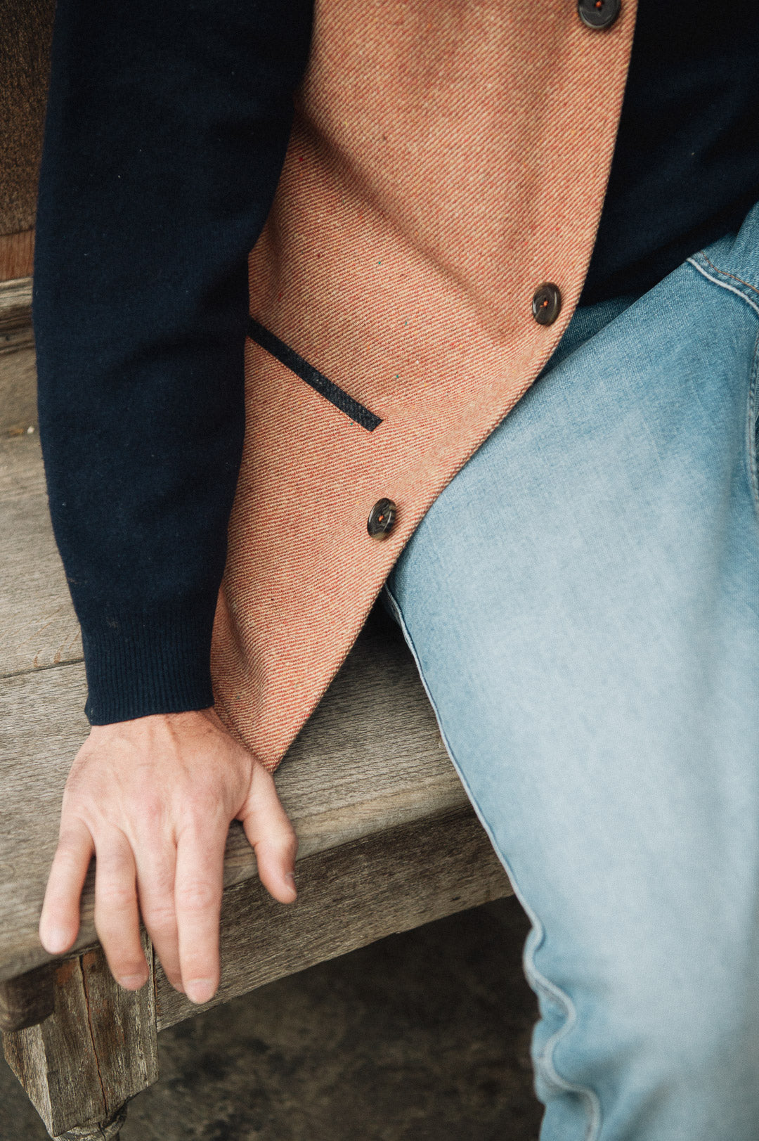 • Fully functioning welted side pockets as well one outer and two inner breast pockets for phone/valuables