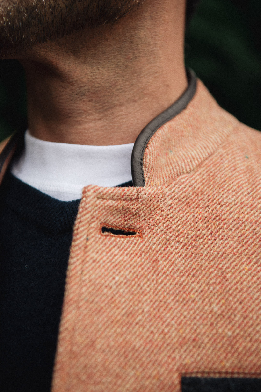 • Stand collar trimmed with premium Italian leather