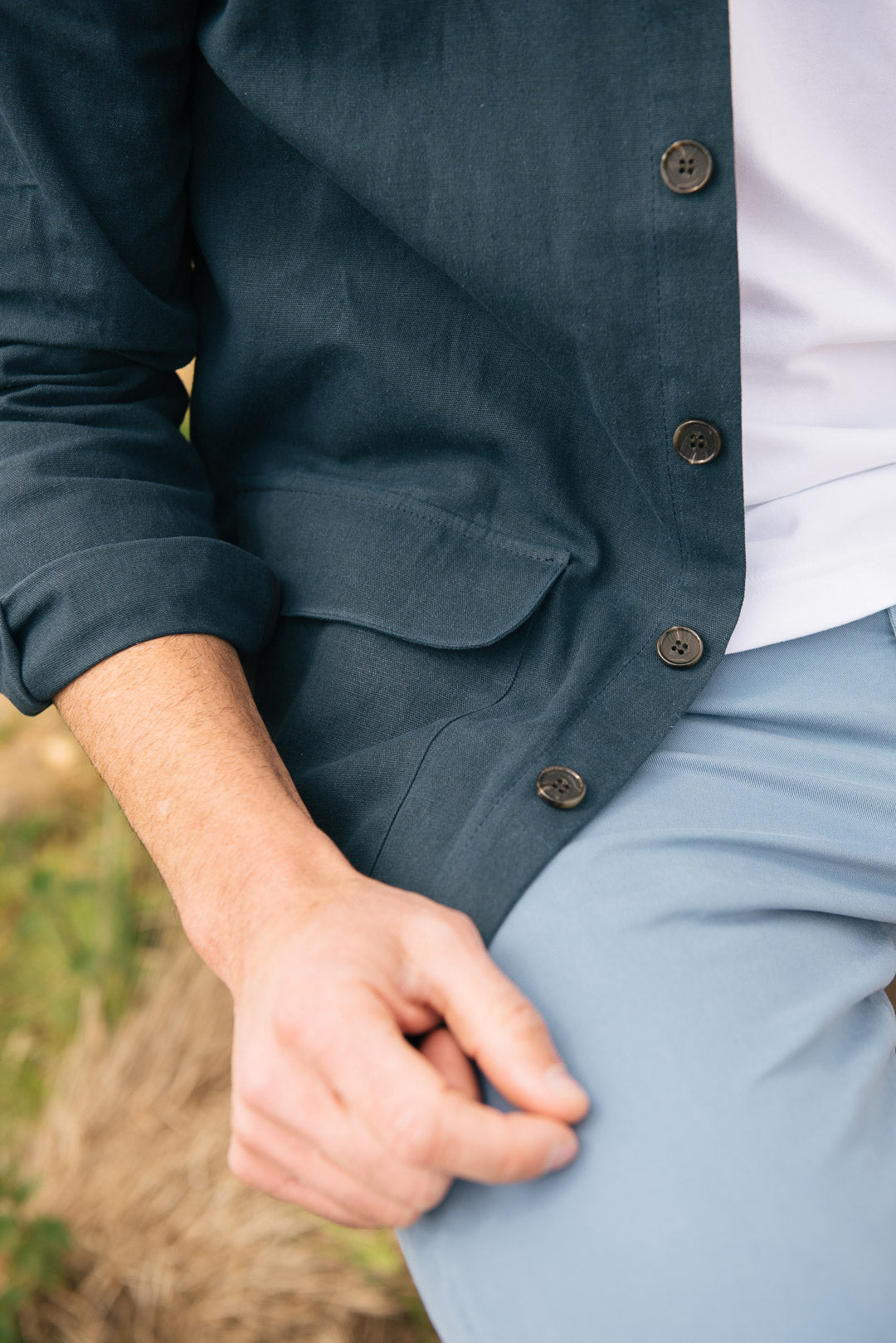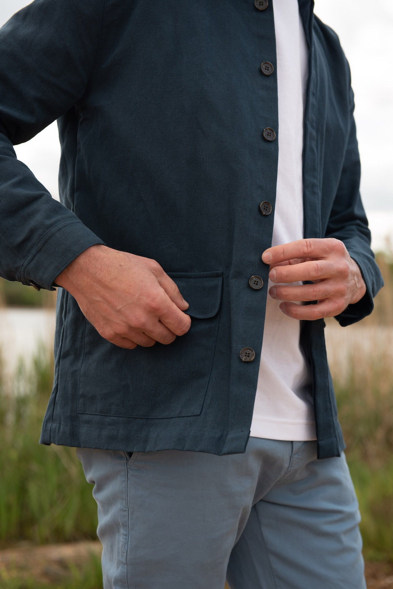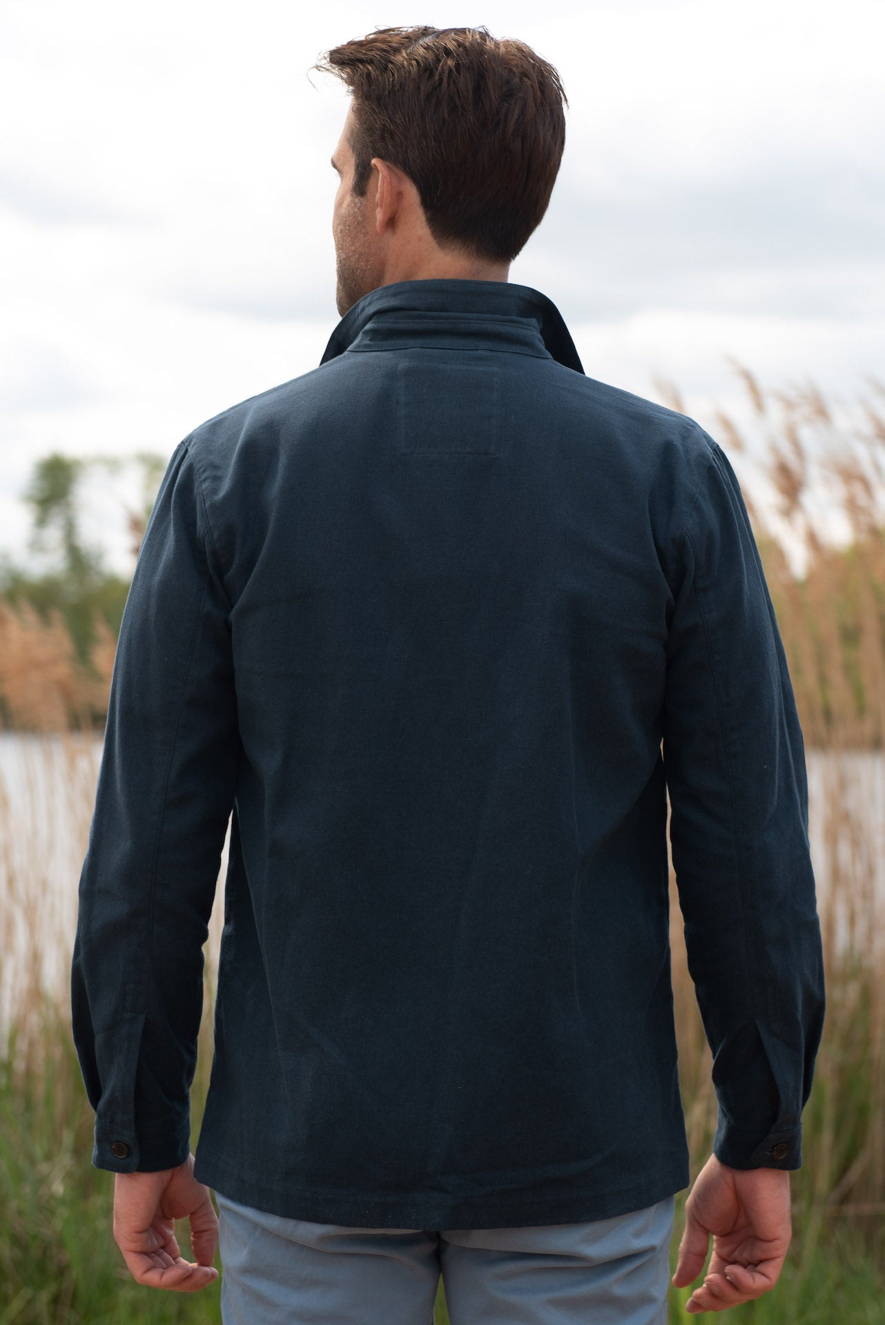 Unstructured and unlined, with this interpretation we have opted for a deliberately paired back design constructed from a durable, shower proof blend of dry waxed cotton and linen in a deep petrol blue. Come shower or shine, simply throw on for a confidently casual extra layer.