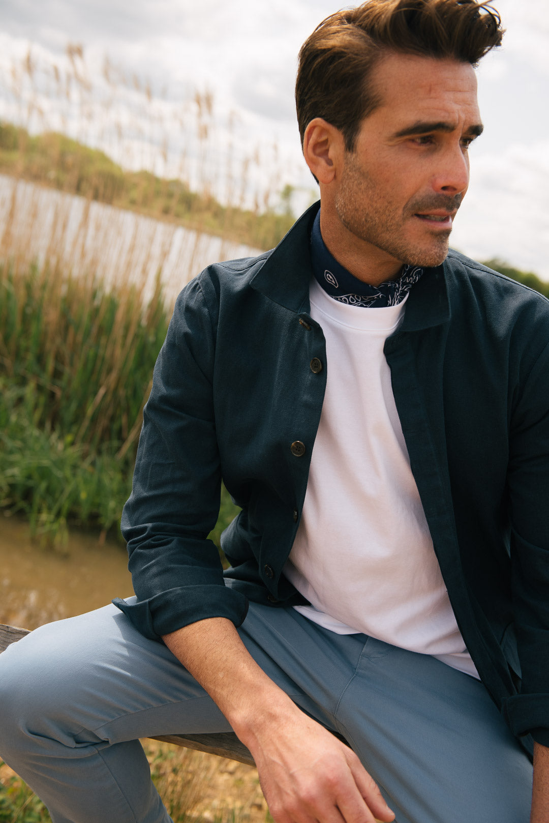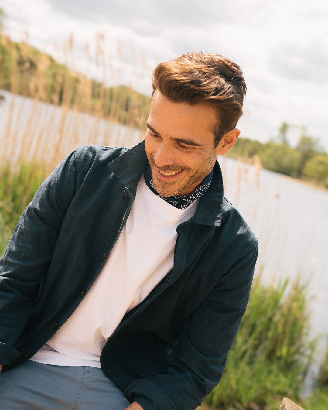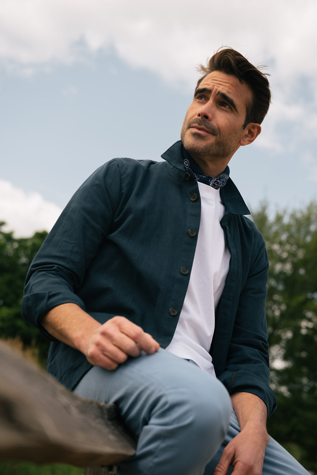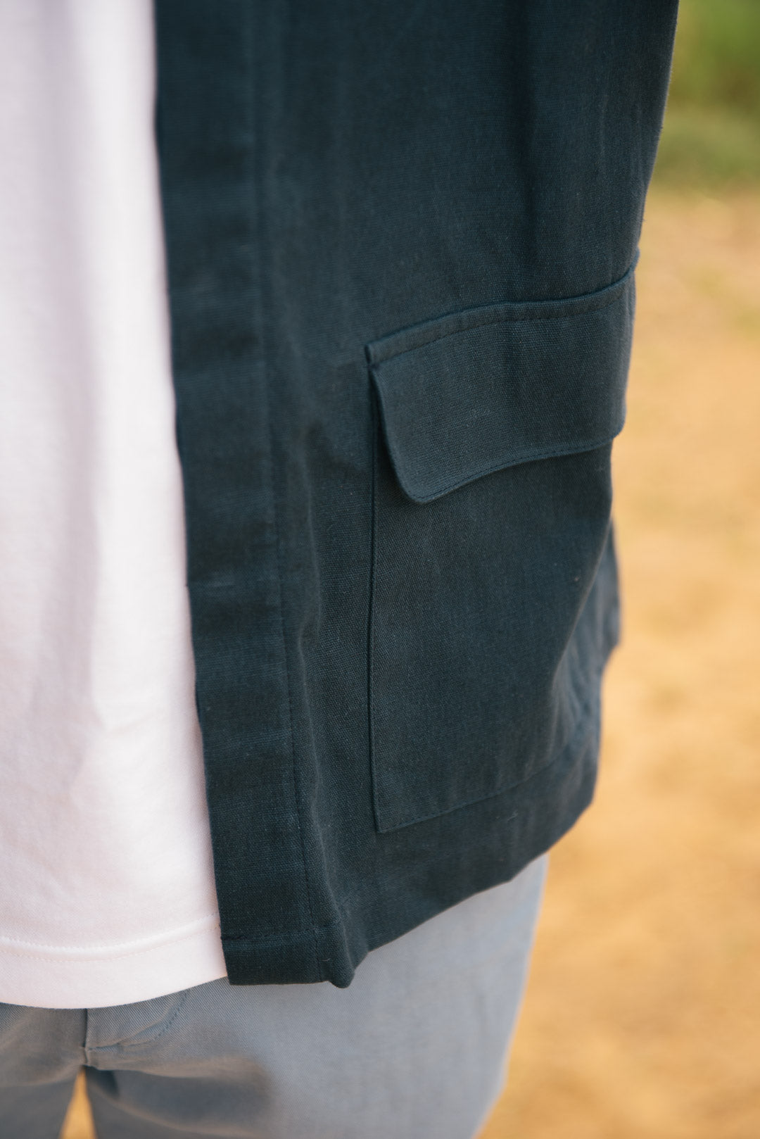 Unstructured and unlined, with this interpretation we have opted for a deliberately paired back design constructed from a durable, shower proof blend of dry waxed cotton and linen in a deep petrol blue. Come shower or shine, simply throw on for a confidently casual extra layer.
